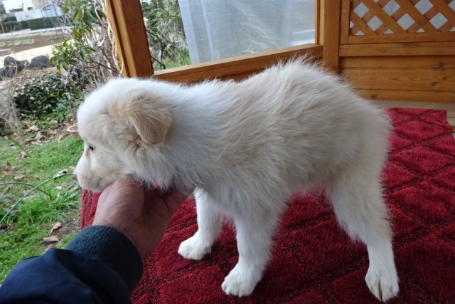 カーナビに住所登録した場所に到着した時は、想像していた雰囲気と違って、エッ⁈ ここは農家さん? って思いましたが、山崎ブリーダーにお会いして、いろいろお話しさせて頂き、そのお人柄と、実際の仔犬ちゃんに接した時、絶対にこの仔が良い!と思いました。山崎さんから 2頭目を購入希望の北海道のオーナーさんとも偶然に出会えて、訓練について教えて頂き、とても勉強になりました。何か有れば、いつでも電話して下さい。と言って頂き、とても心強く、安心出来ました。これからの、この仔との生活が本当に楽しみです!山崎さんと出会えて良かったです!ありがとうございました!(沖縄県 女性)